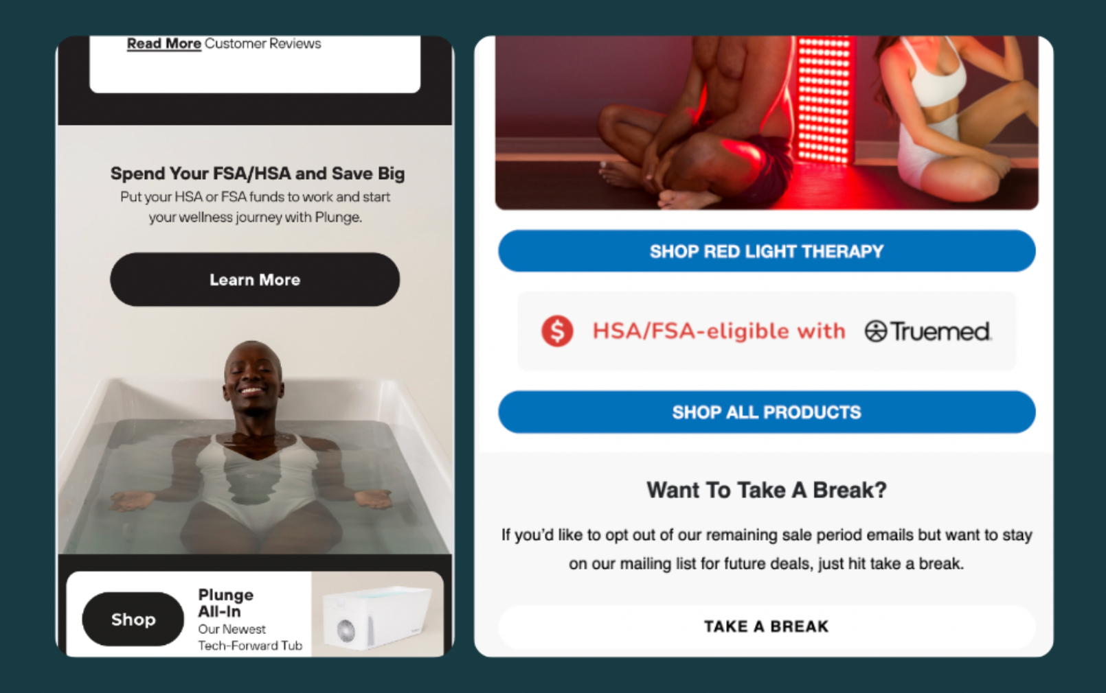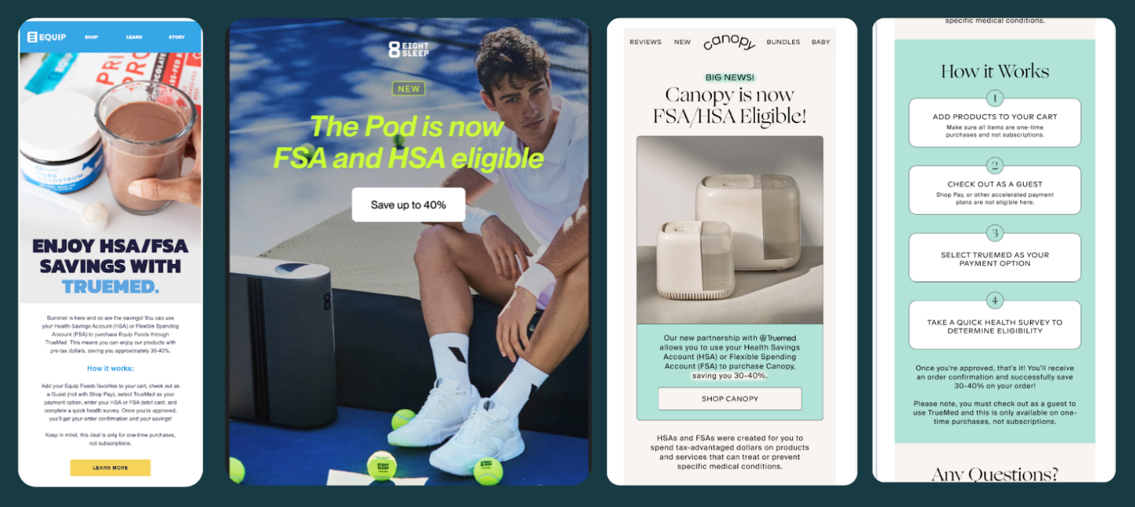 Add a Truemed CTA to the footer of all emails to consistently remind customers of the savings they can enjoy when spending HSA/FSA dollars with you.