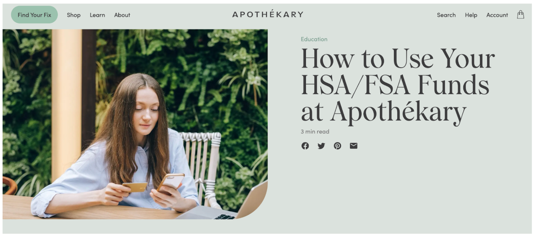 Make sure to include how a customer can use their HSA/FSA, ideally linking to your HSA/FSA landing page with further instructions.